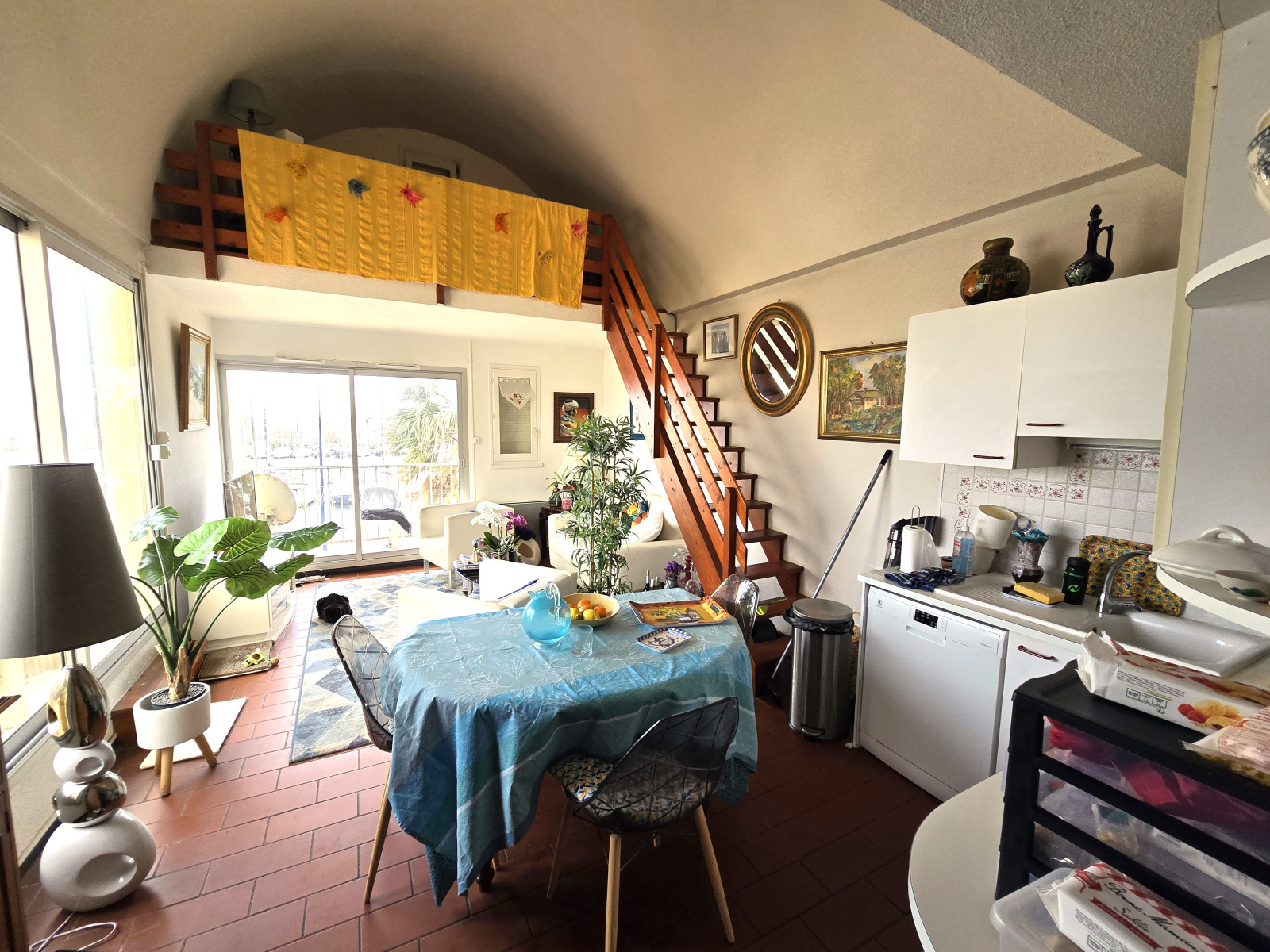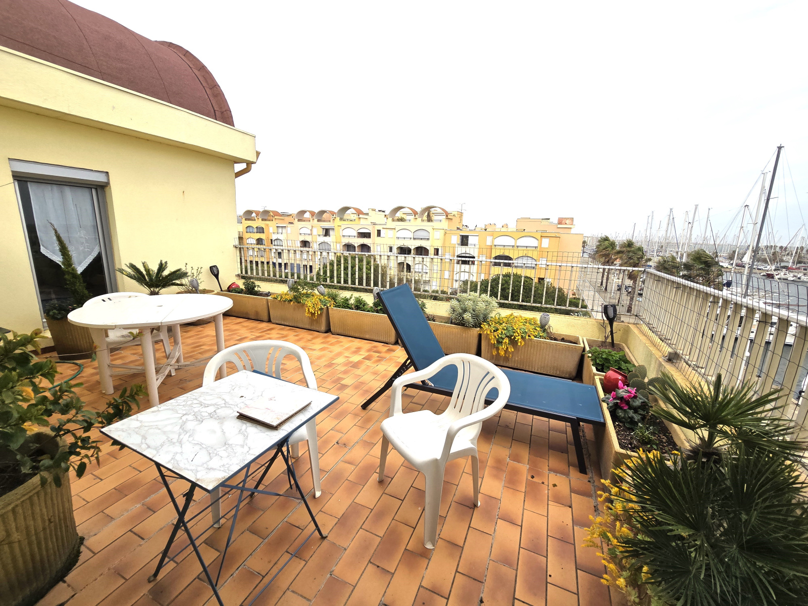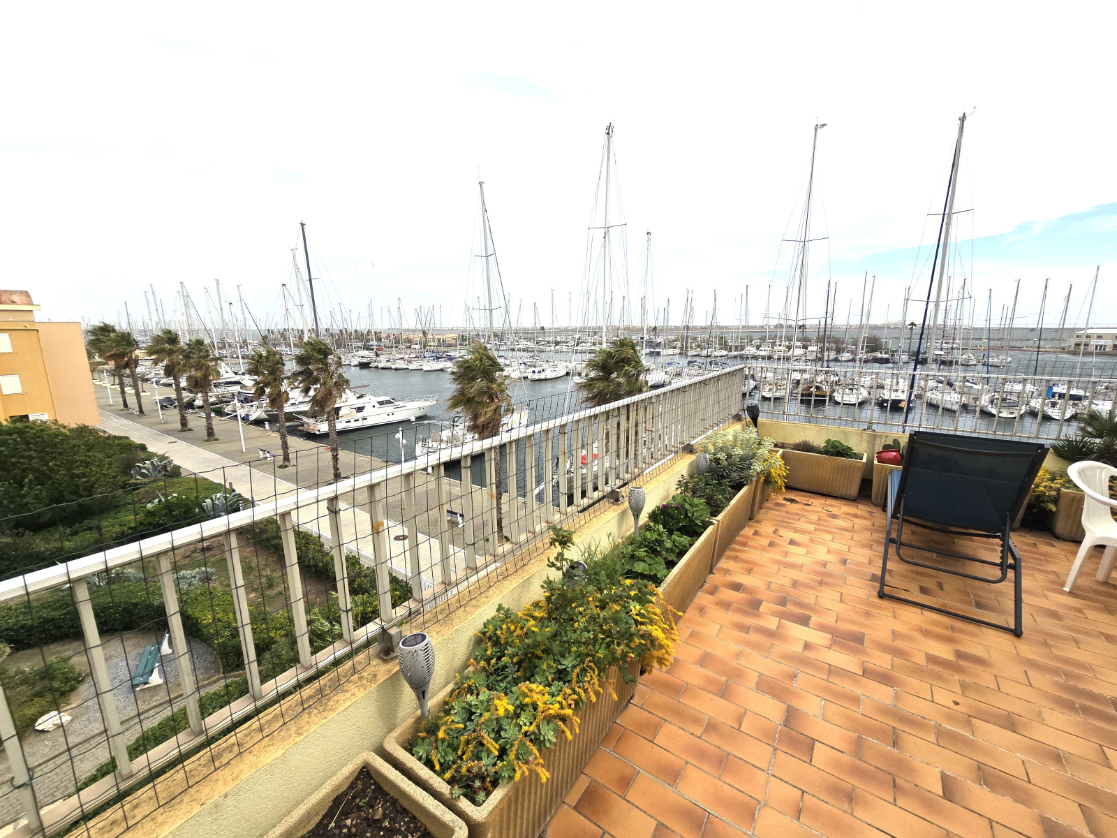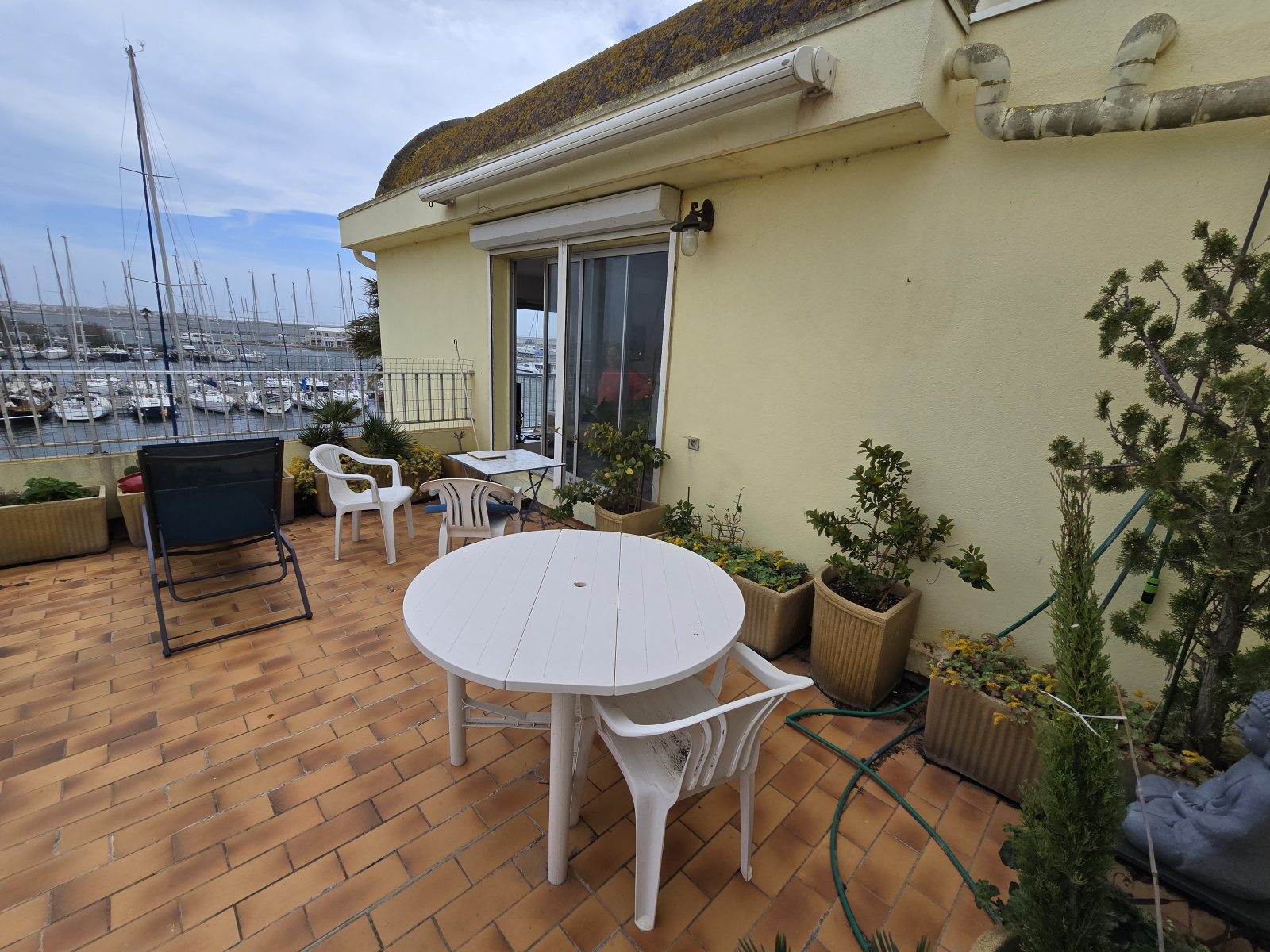 La pièce de vie s'ouvre sur 2 belles terrasses avec une vue à 180 degrés sur le port, les chalets et la plage de la vieille nouvelle.