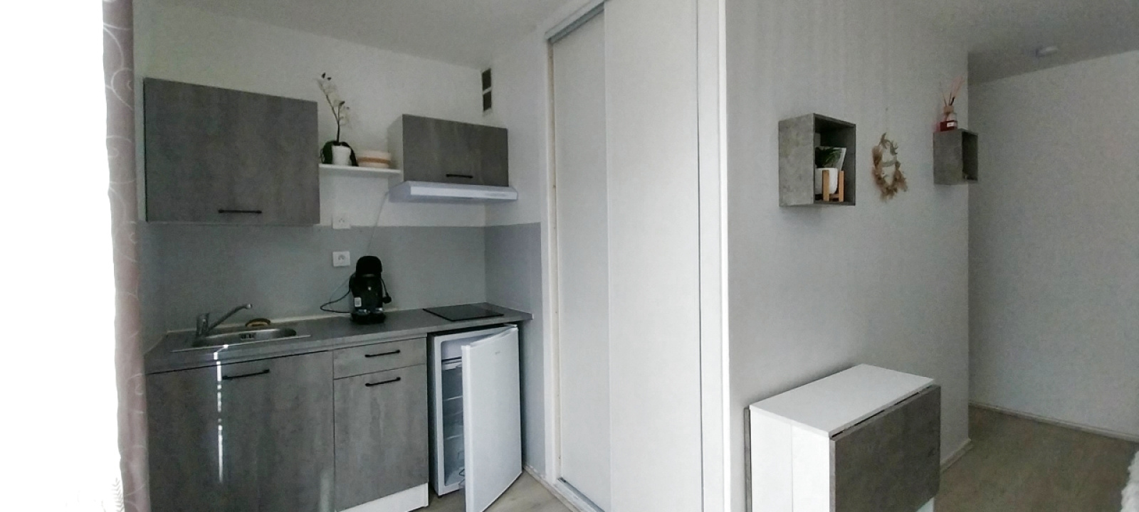 Il se compose d'une pièce à vivre avec un coin cuisine, d'une salle d'eau avec toilette.